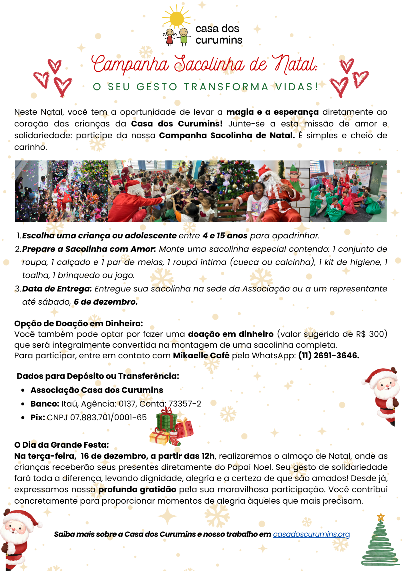 Entre em contato com Mikaelle Café pelo whatsapp (11) 2691 3646 e escolha como você pode fazer parte dessa ação tão significativa.