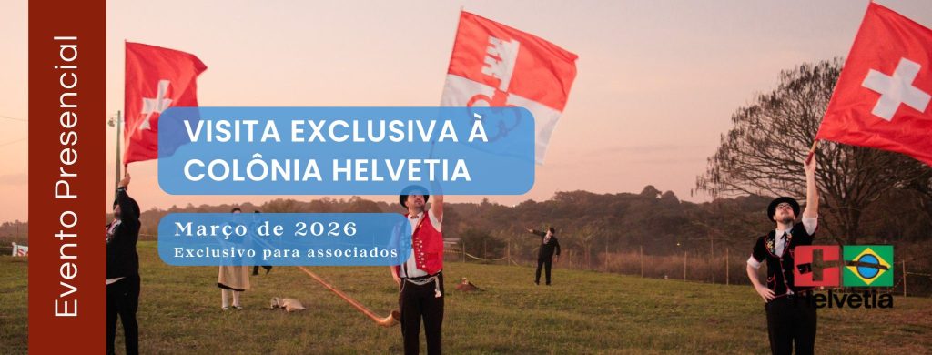 Temos a honra de convidar para uma visita exclusiva para associados em março à Colônia Helvetia, localizada em Indaiatuba (SP), formada por imigrantes suíços em 1888, onde se mantém a tradição da Suíça central no Brasil, buscando preservar seus costumes, construções, religião, esportes, festas e rico folclore.